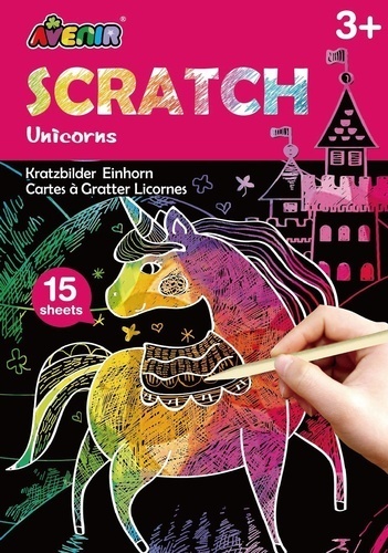 Skvělá kniha na cesty - 15 zábavných stíracích stránek plných obrysů jednorožce připravených k poškrábání pomocí speciálního škrabacího nástroje. Jednoduše poškrábejte černý film, abyste odhalili barvy! Věk: 3+