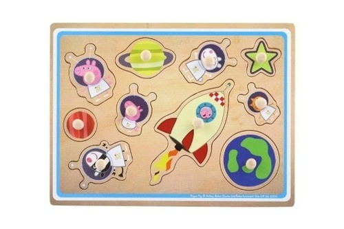Vkládačka s postavičkami pohádky Prasátko Peppa. Dítko veme daný obrázek a snaží se dle tvaru vložit na správné místo na dřevěné desce. Balení obsahuje dřevěnou desku a 10 prvků s Peppou a jeho kamarády ve vesmíru. Rozměr balení: 31 x 23,5 cm Vhodné pro děti od 18...