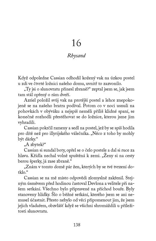 Feyre, Rhysand a jejich nejbližší přátelé pracují na obnově Nočního dvora i válkou zničené země. Ačkoli lidské královny i vílí vládci kují pikle, ve Velarisu alespoň na chvíli nastala sváteční atmosféra. Blíží se totiž oslavy zimního slunovratu. A právě v okamžicích klidu a míru se ukáže, že...
