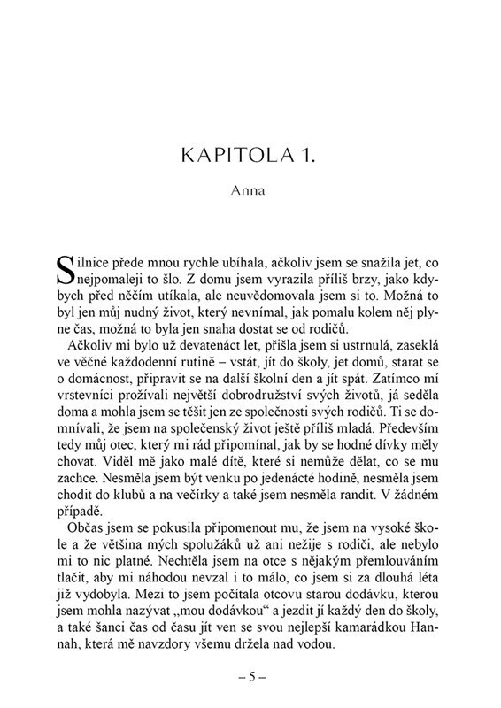 Devatenáctiletá Anna Laneová má přísné rodiče, a tak na rozdíl od svých vrstevnic nemůže chodit na večírky ani randit s kluky. I přesto hledá kličky, jak pravidla obcházet. Jednoho dne se stane svědkyní přepadení. Nepříjemná událost ji svede dohromady s o dva roky starším Maddoxem. Pro oba tím...