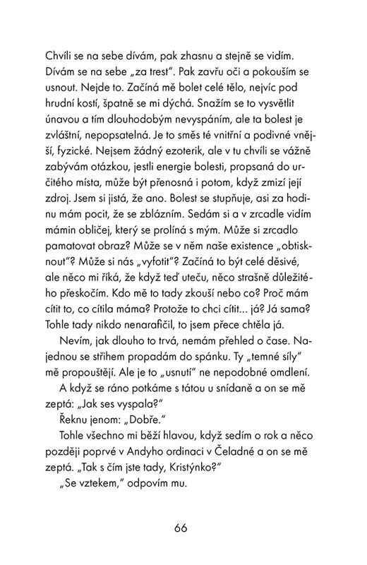 Cestu ke světlu, humor, harmonii a sebepřijetí mnohdy objevíme na místech, kde bychom to čekali nejméně. Herečka Kristýna Frejová ji našla v absolutní temnotě. Pomocí terapie tmou se rozhodla zpracovat smrt své matky Věry Galatíkové, vztah k otci Ladislavu Frejovi i ke své dceři. Směs vzpomínek,...