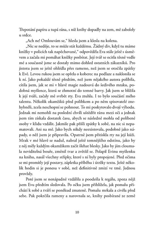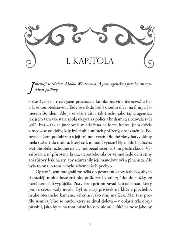 Malou je antimúza. Jako potomek skutečné ženy a fiktivního knižního hrdiny dostala do vínku neobvyklou schopnost: polibkem dokáže spisovatelům krást nápady. Svůj úděl se snaží využít pro dobro literatury, upadne však v podezření, že několik autorů připravila kromě nápadů i o život. Teď musí své...