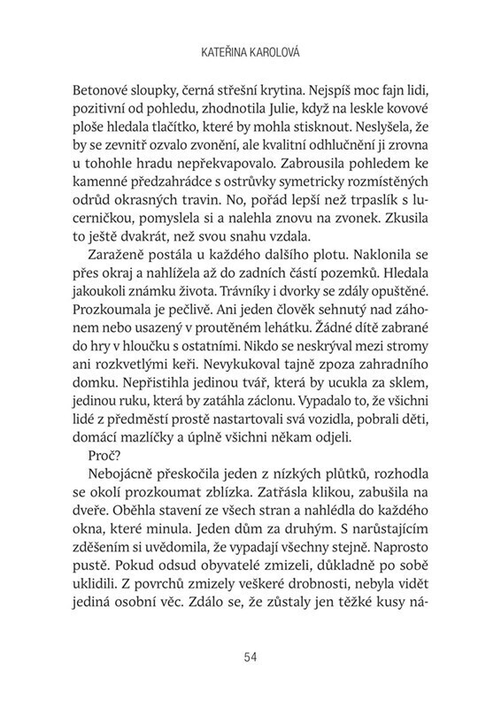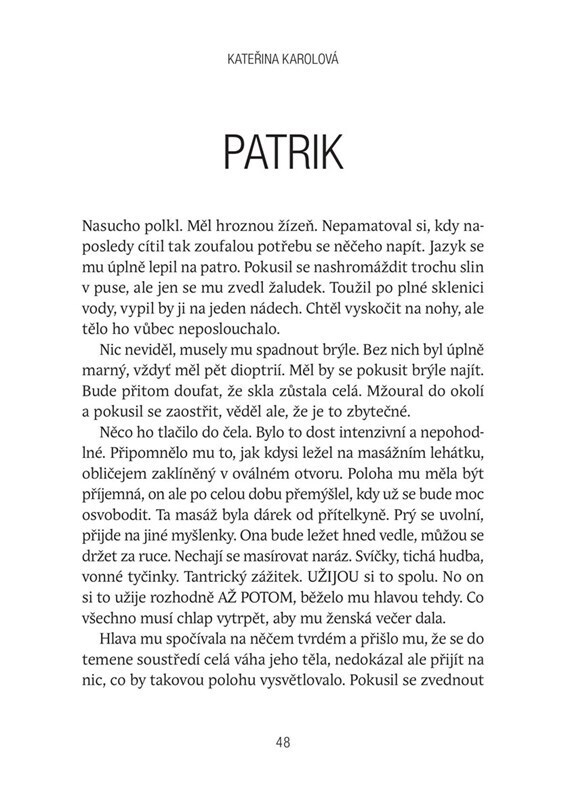 Jsou tři, i když každý sám. Probudí se na neznámém místě. Netuší kde, neví proč. Nic si nepamatují. Julie procitá na zemi v cizí koupelně. O kus dál se probouzí Viktor. Patrika ze spánku vytrhne bolest a stejně jako ostatní tápe s naprostou marností v zamlžených vzpomínkách. Nedokáže promluvit a...
