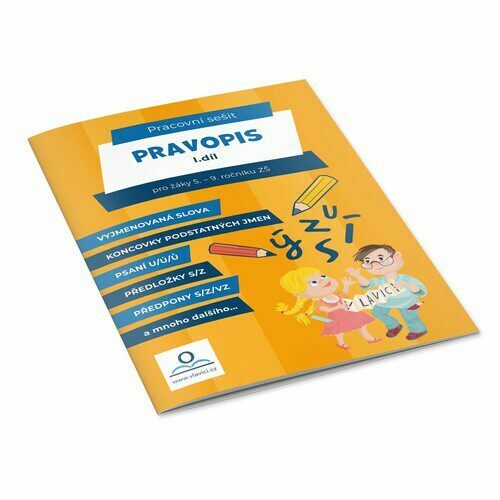 Pracovní sešit - Pravopis 1 je určen pro žáky 5. - 9. ročníku. Procvičování obsahuje - vyjmenovaná slova, koncovky podstatných jmen, pravopis u/ú/ů, předložky s/z, předpony s/z/vz a mnoho dalšího. PS je na 36 stránkách a obsahuje klíč.