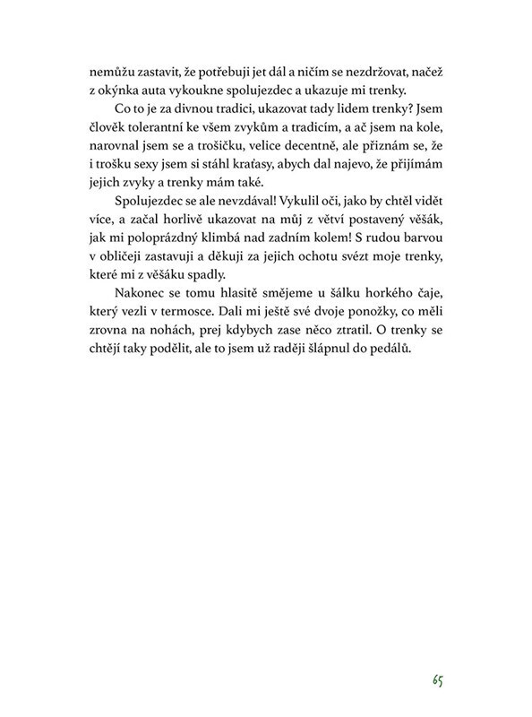Tomík je opět na cestách. I když na kole nikdy předtím neujel víc než 50 kilometrů, rozhodl se absolvovat náročnou, 7 500 kilometrů dlouhou cestu. S padesátieurovkou v kapse, přiblblým výrazem ve tváři a nadšením v duši projel osm zemí. Potýkal se s rozpáleným Tureckem, užíval si pohostinnou...