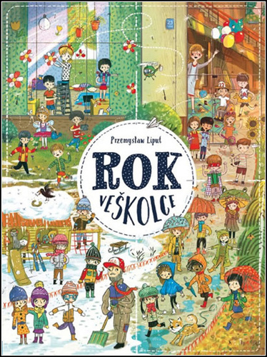 Rok ve školce obsahuje dvanáct bohatě ilustrovaných dvoustran, které dětem ukazují, co všechno se dá v průběhu roku – od září do letních prázdnin – zažít ve školce. Děti si díky detailním obrázkům procvičují postřeh a