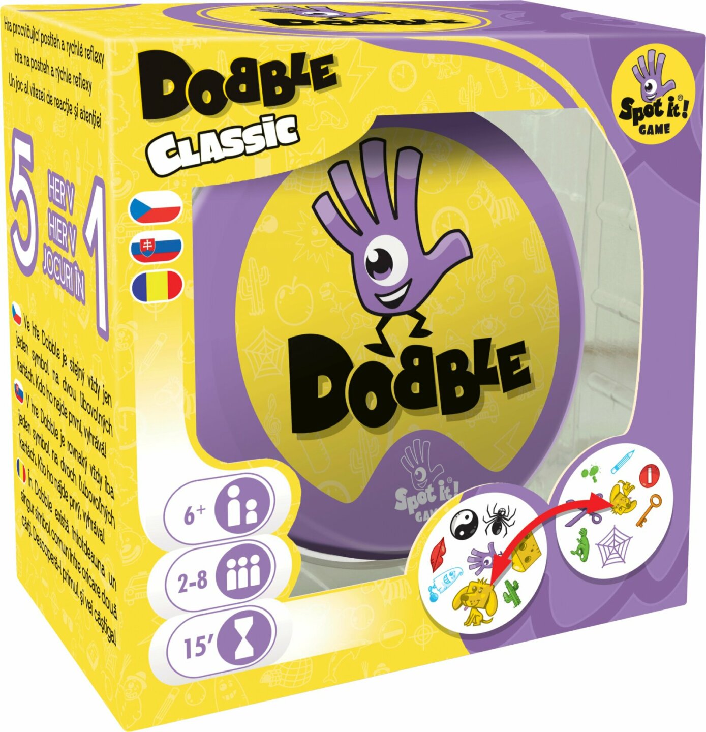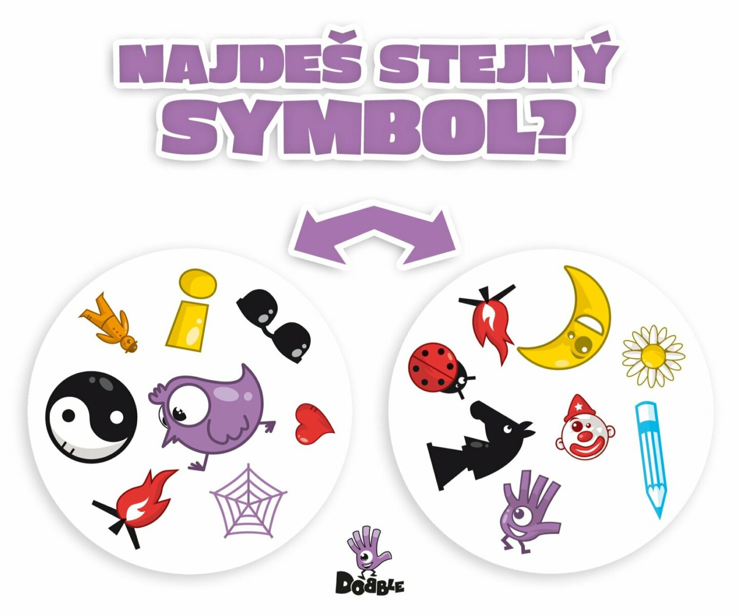 Dobble, to je 55 karet, 8 symbolů na kartě a každé dvě karty spolu mají společný pouze jeden! Hra nabízí zcela unikátní zábavu. Hráči zde hledají dva stejné symboly na kartách při různých verzích hry (v pravidlech je popsáno celkem 5 her). Super jsou kulaté karty i jednoduchá pravidla vysvětlená...