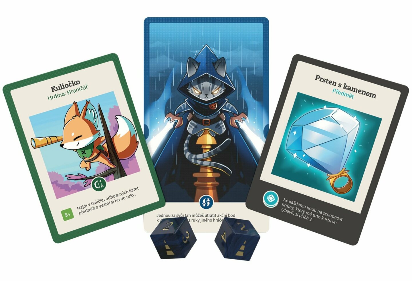sesílat kouzla a používat modifikátory, abyste si naklonili šance ve svůj prospěch. Cíl hry První hráč, který ZABIJE tři monstra nebo sestaví skupinu z šesti různých tříd hrdinů, vyhrává hru. Jak na hru Střídejte se v tazích ve směru hodinových ručiček. Ve svém tahu