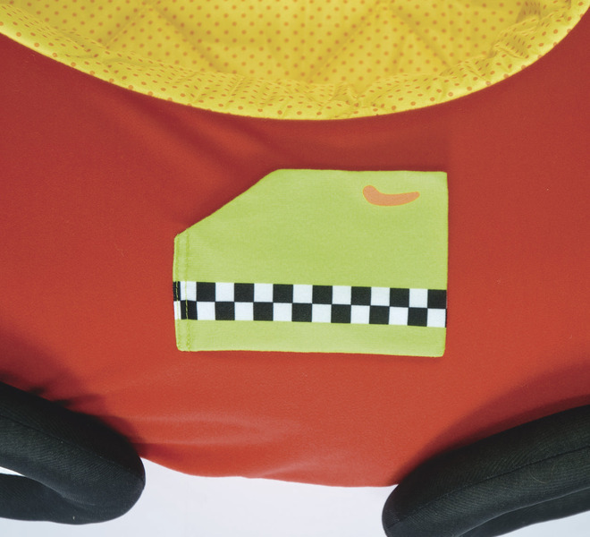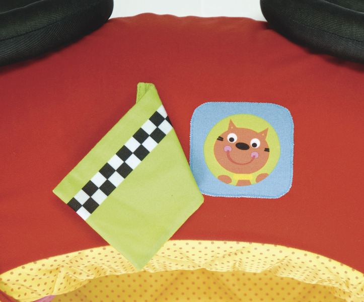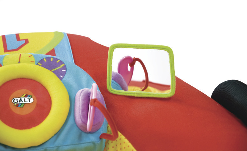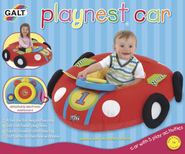 Auto má bezpečnou odnímatelnou elektronickou palubní desku, vlastní volant, klíč, klakson, rádio s melodií, zrcátko, kola apod. Vydává zvuk motoru a troubí. Tato hračka je bezpečná a ideální pro podpoření hmatových, zrakových i zvukových vjemů dítěte. Auto je po odepnutí palubní desky možné prát...