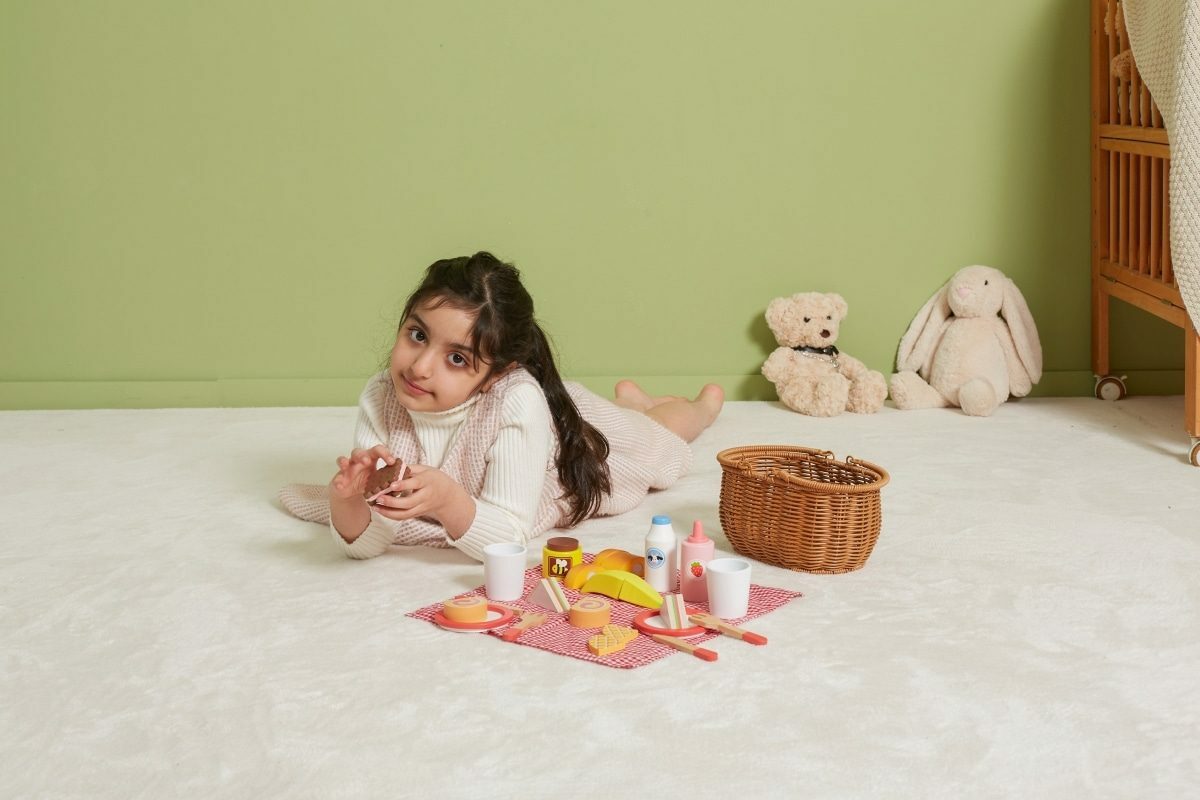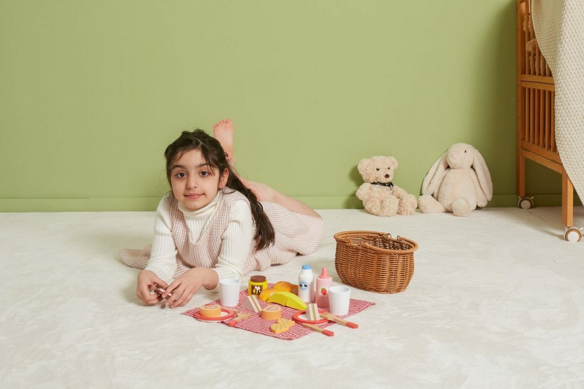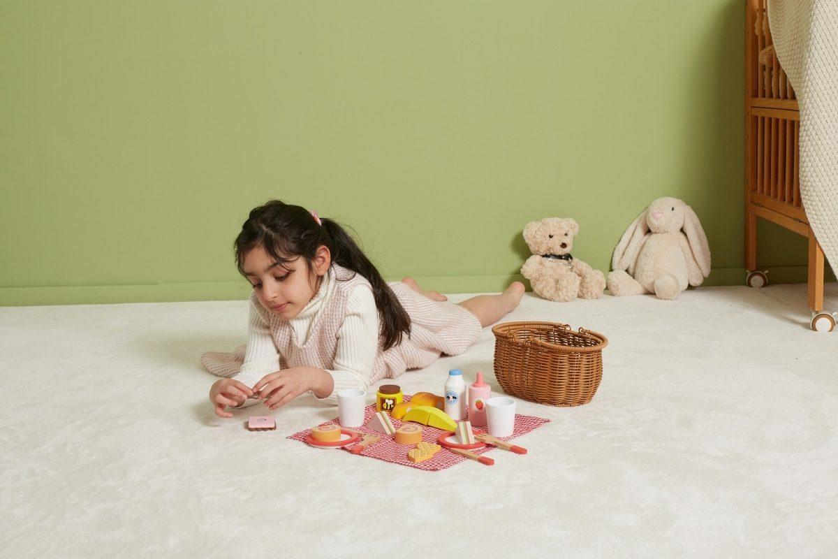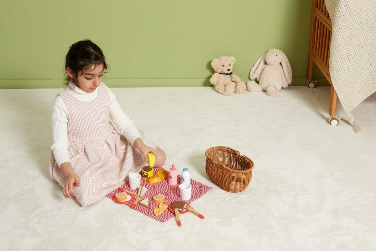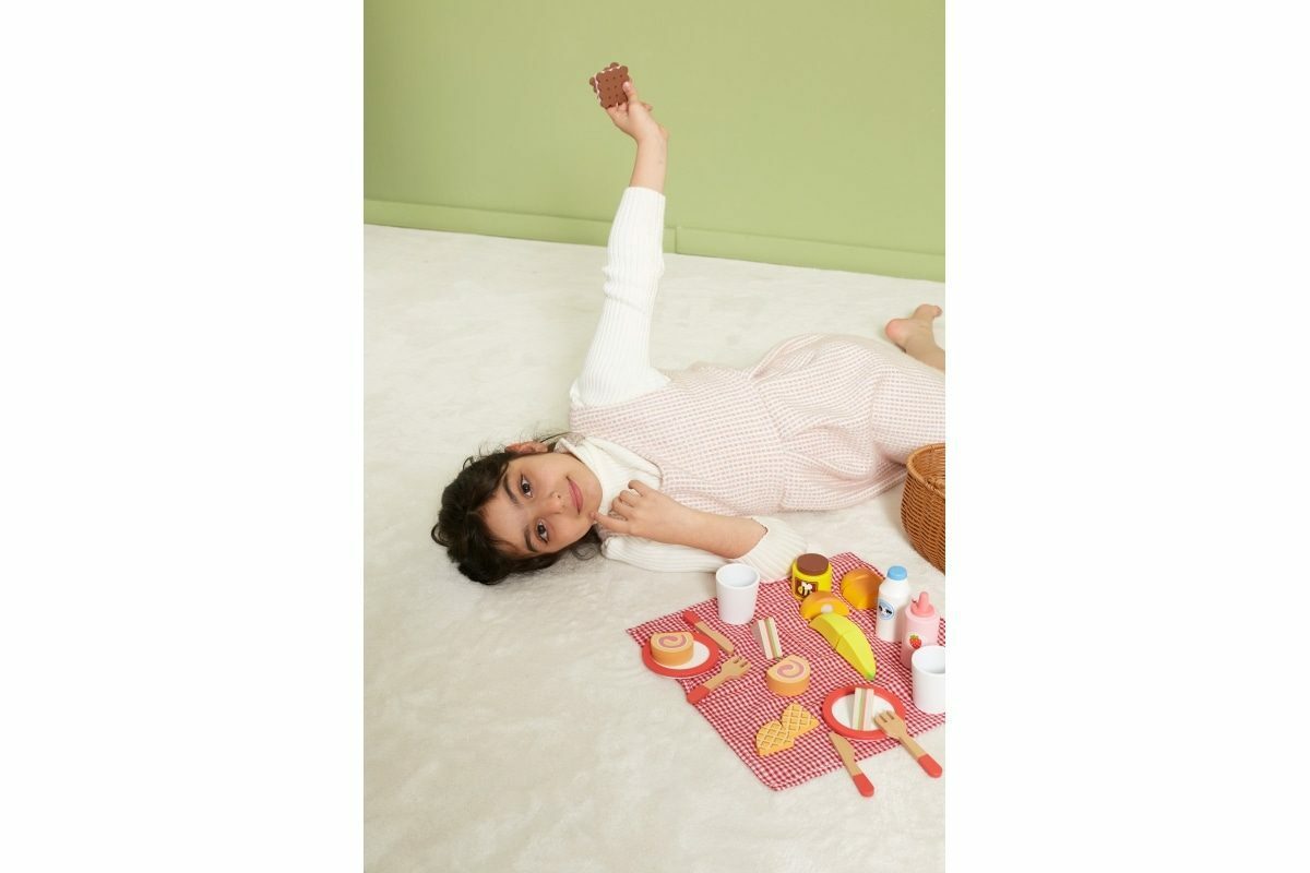 Krásný koš z umělého rákosu je vyplněný dřevěnou sadou doplňků a kostkovanou látkou. Díky bytelným madlům si vaše dítě snadno vezme celou sadu s sebou, kamkoli půjde. Sada se skládá z 30 prvků. Rozměr košíku cca 25 x 23,5 x 14,5 cm. Rozměr balení cca 28 x 14 x 16 cm. Věk...