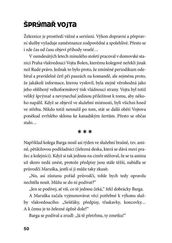 Pořád se něco děje, a na železnici zvlášť! Příběhy a povídky, podané s lehkou nadsázkou, vycházejí ze skutečných událostí, jež se na dráze přihodily. Nezáleží na tom, zda jste vlakvedoucí, závorář, výpravčí či strojvůdce – všude tam, kde se lidé setkávají s technikou není nouze o zajímavé...