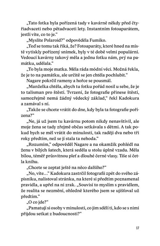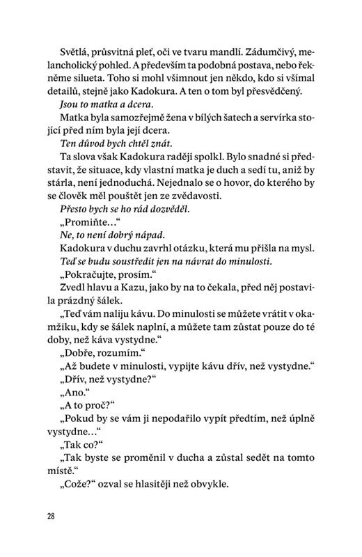 Ve vzduchu se vznáší vůně vzpomínek a čerstvě uvařené kávy. Japonská kavárna Funiculi funicula opět otevírá dveře těm, kteří se chtějí vydat do minulosti. Dokážou se díky tomu smířit se ztrátou? To zjistí muž, který zanedbával svoji rodinu, majitelé vyrovnávající se se smrtí svého psa, žena,...