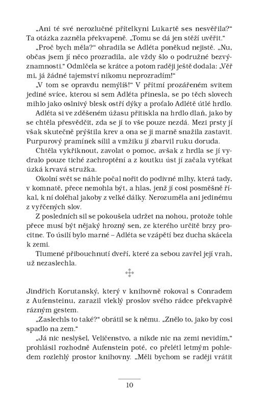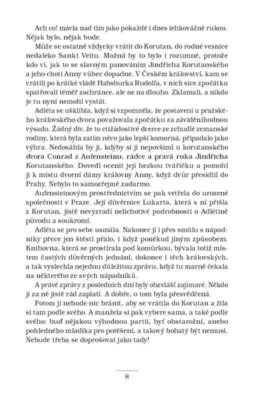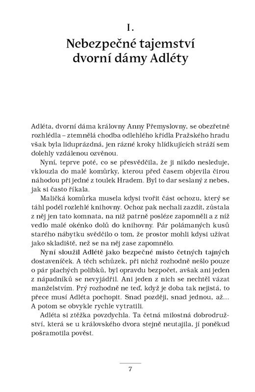 Šlechtic Adam ze Zbraslavi je po krátkém pobytu v klášteře opět povolán ke královskému dvoru. O pomoc ho tentokrát požádala jeho chráněnka Alžběta, která se strachuje o život své tety Elišky Přemyslovny. Dvě dvorní dámy za podivných okolností zemřely – a zdá se, že nešlo jen o zločiny z vášně. V...