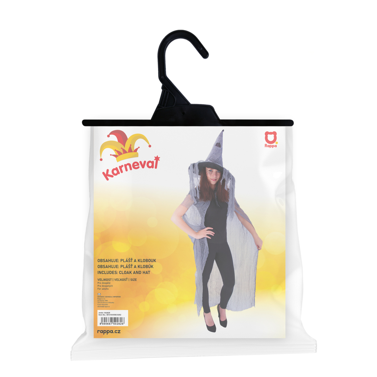 Perfektní souprava pro dospělé na Halloween párty nebo karneval! Balení obsahuje čarodějnický plášť šedé barvy a perfektně sladěný klobouk. V těchto exkluzivních doplňcích tě zaručeně nikdo nepřehlédne!
