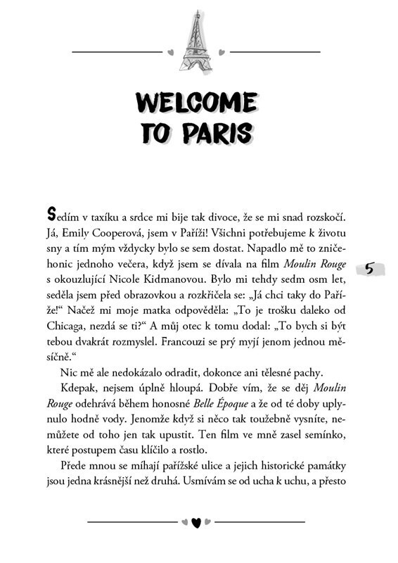 Sedím v taxíku a srdce mi tluče tak rychle, až mám pocit, že brzy exploduje. Já, Emily Cooperová, jsem v Paříži! Všichni máme sny, a ten můj se právě plní. Když sníte tak usilovně jako já, je těžké přestat. Ulice Paříže se míhají kolem, jedna slavná památka střídá druhou, každá je nádhernější...