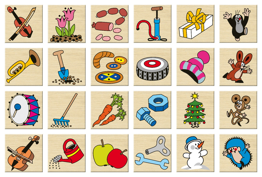 Didaktická hra z dřevěných kamenů o rozměrech 40x40x6 mm s potiskem Krtka a jeho kamarádů. Hra pomáhá dětem rozpoznávat předměty a přiřazovat je ke správnému obrázku. Je vhodná při procvičování logického myšlení a paměti. Výrobek splňuje požadavky EU na bezpečnost hraček a je vhodný pro děti od...