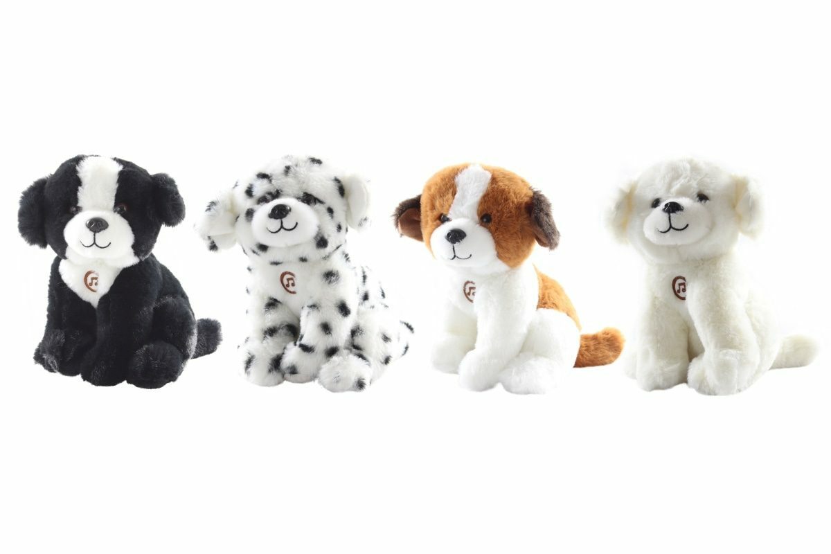 Plyš Pejsek zvukový o velikosti cca 18 cm. Po zmáčknutí vydává zvuky, štěkání a kňučení. Provoz na 3 baterie AA uvnitř zvířátka. Věk 0+