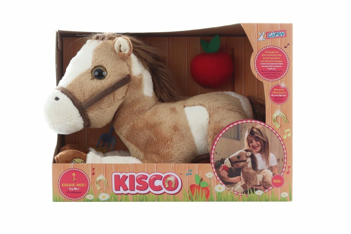 Plyšový koník, který po zmačknutí tlačítka řehtá, hýbe hlavou a píská si veselou písničku. Napájení na 3 AAA baterie, které jsou součástí balení. Rozměry balení 34,5x25,5x18 cm. Věk 18m+