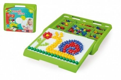 Přenosný úložný kufřík s vysouvacími panoramatickými deskami pro vkládání kolíčků. Kufřík slouží zároveň k uložení kolíčků. Kufřík obsahuje 300ks barevných kolíčků 10mm a 100ks barevných kolíčků 15mm. Rozměr kufříku: 30 x 26 x 4,5 cm (D x V x Š). Vhodné od 3...