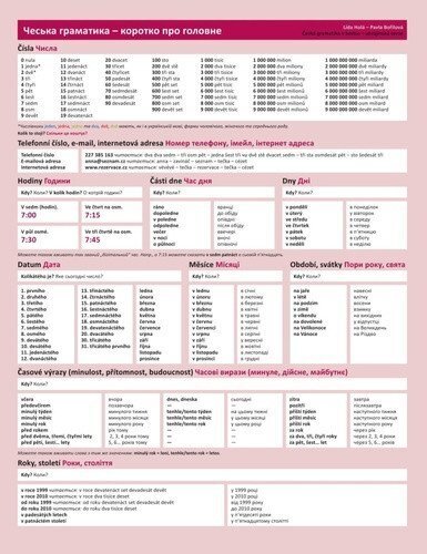Česká gramatika v kostce - ukrajinská je čtyřstránková příručka o něco většího formátu než A4, tištěná na oboustranně laminované křídě. Její inovovaná, rozšířená verze z roku 2010 je určena začátečníkům a středně pokročilým studentům češtiny jako cizího