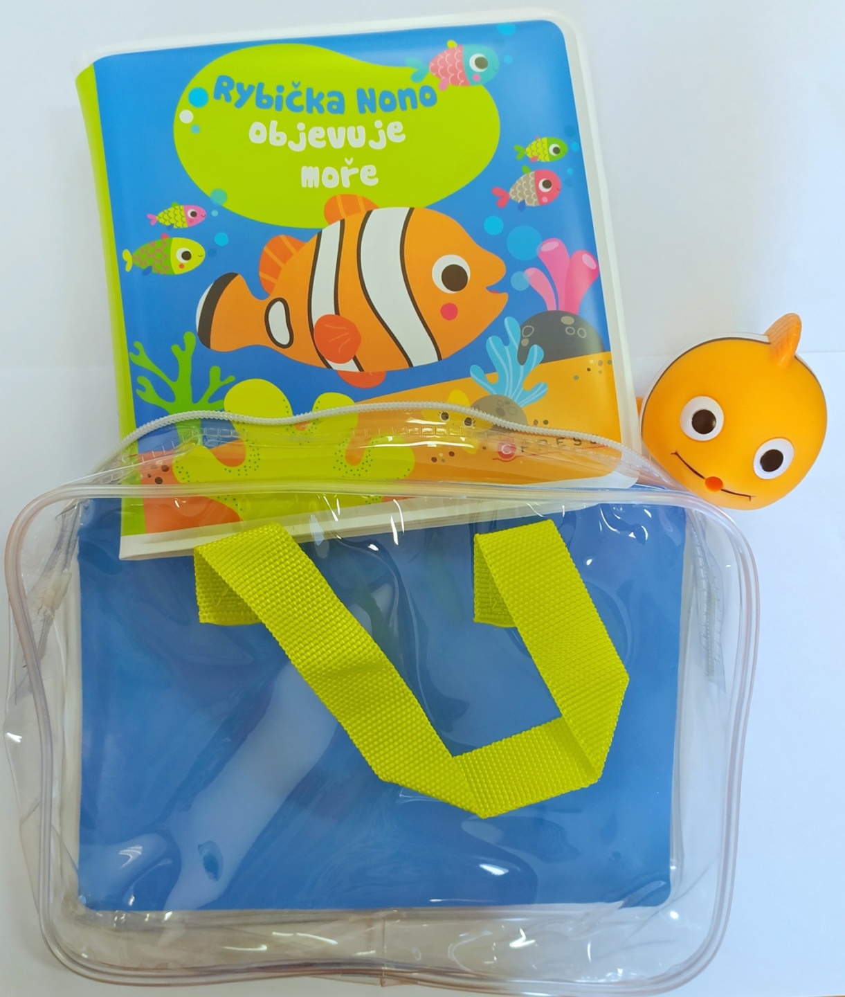 Omyvatelná měkká knížečka vyprávějící krátký veselý příběh o oblíbeném vodním zvířátku, které je navíc přiloženo v podobě stříkací gumové figurky. Kniha i hračka jsou uloženy v praktické plastové taštičce na zip, takže váš malý Plaváček má pohromadě vše potřebné k vodním hrátkám ve vaně či...