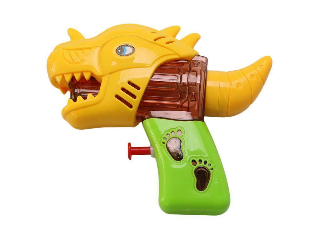 Plastová vodní pistole ve tvaru dinosaura. Velikost cca 15 x 12 x 4,5 cm. Baleno v igelitu. Věk 3+