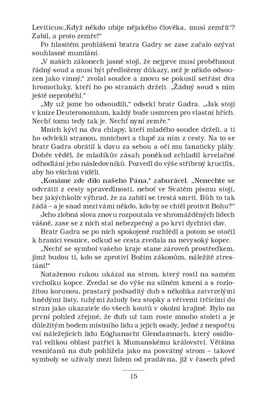 Fidelma s Eadulfem se v chladném únorovém dni roku 671 vracejí do Cashelu. Na noc chtějí zastavit ve známém hostinci v horách, ten je ale do základů vypálený. Zamíří tedy k vísce Cloichín, ležící v údolí pod horami, kterou si Fidelma pamatuje jako krásné a blahobytné místo, pravý ráj na zemi....