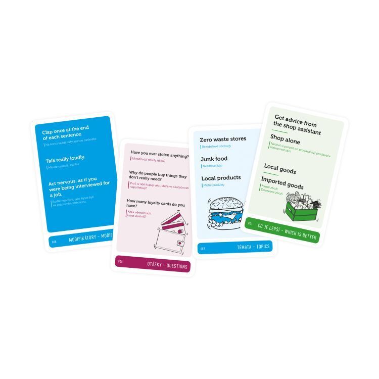 Rozmluvíme Česko vám pomůže procvičit mluvený projev v jazyce doma i na cestách. Hra obsahuje: 100 karet, texty jsou včetně českého překladu.