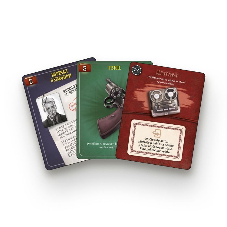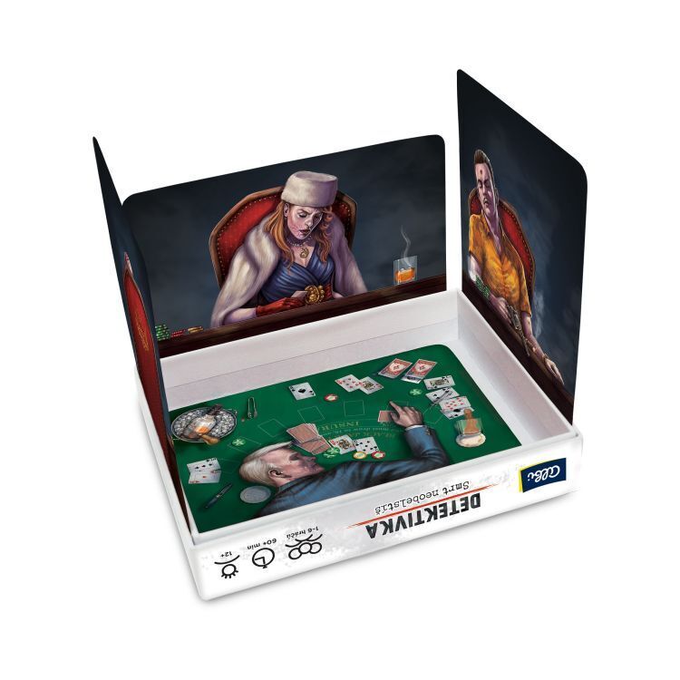 Vydejte se po stopách zločinu! Hledejte důkazy v 3D prostředí, vytvořeném z karet ve hře Detektivka. Začněte hrát bez čtení pravidel - hra vám postupně na kartách říká, co se stalo a jak postupovat. Obsahuje: 60 karet, 7 barevných sponek.