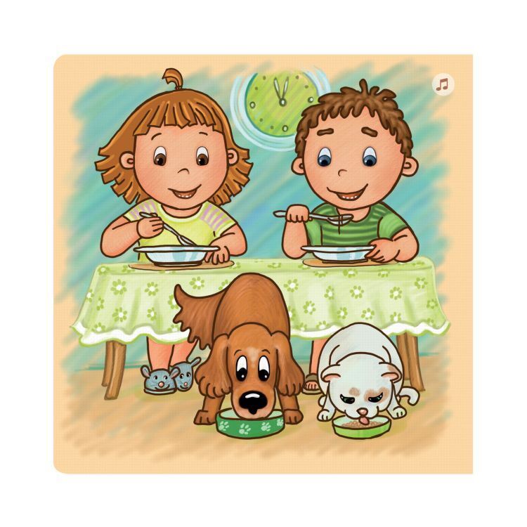 Knížka provede děti jedním dnem sourozenců Honzíka a Barborky. Vstanou s nimi, vyčistí si zoubky, dají si něco dobrého k obědu, zahrají si spolu a to všechno spolu s Honzíkovým pejskem a Barborčinou kočičkou.
